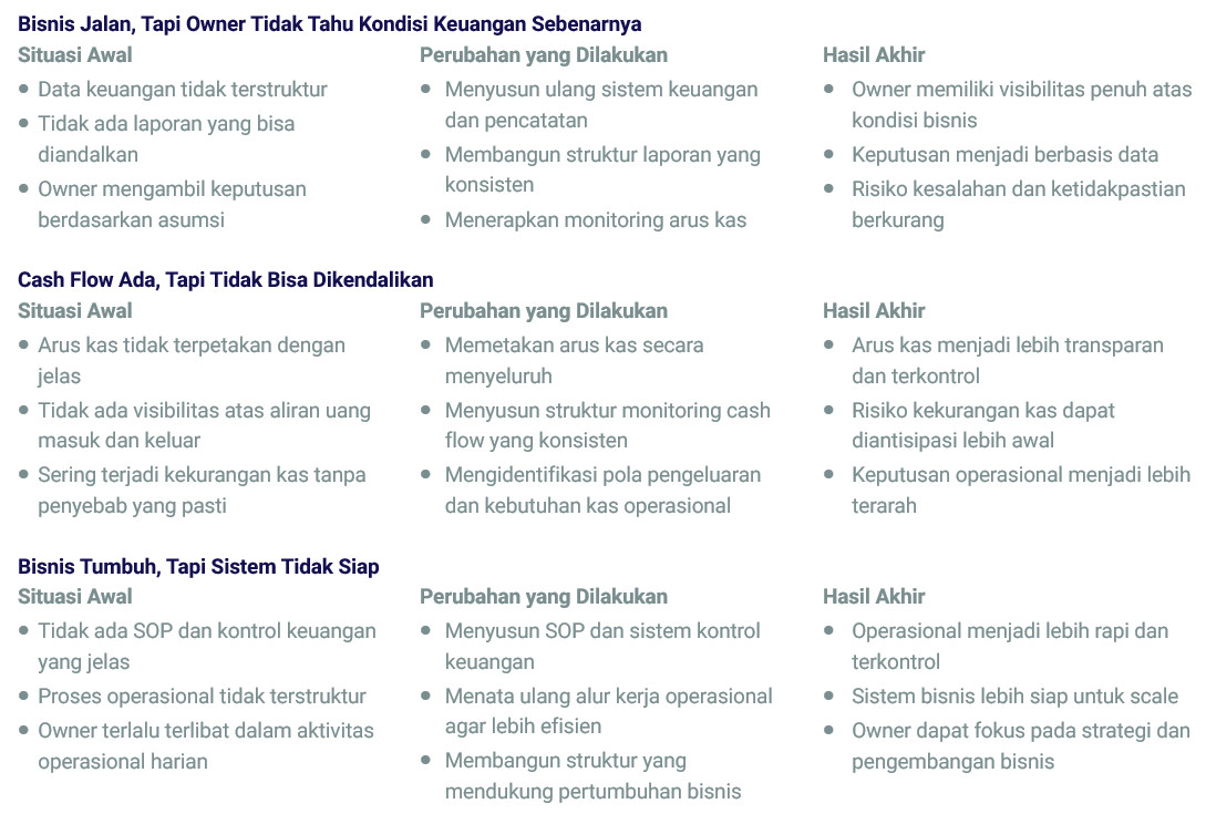 Bukan sekadar laporan — kami membantu bisnis memiliki kontrol dan arah yang jelas.